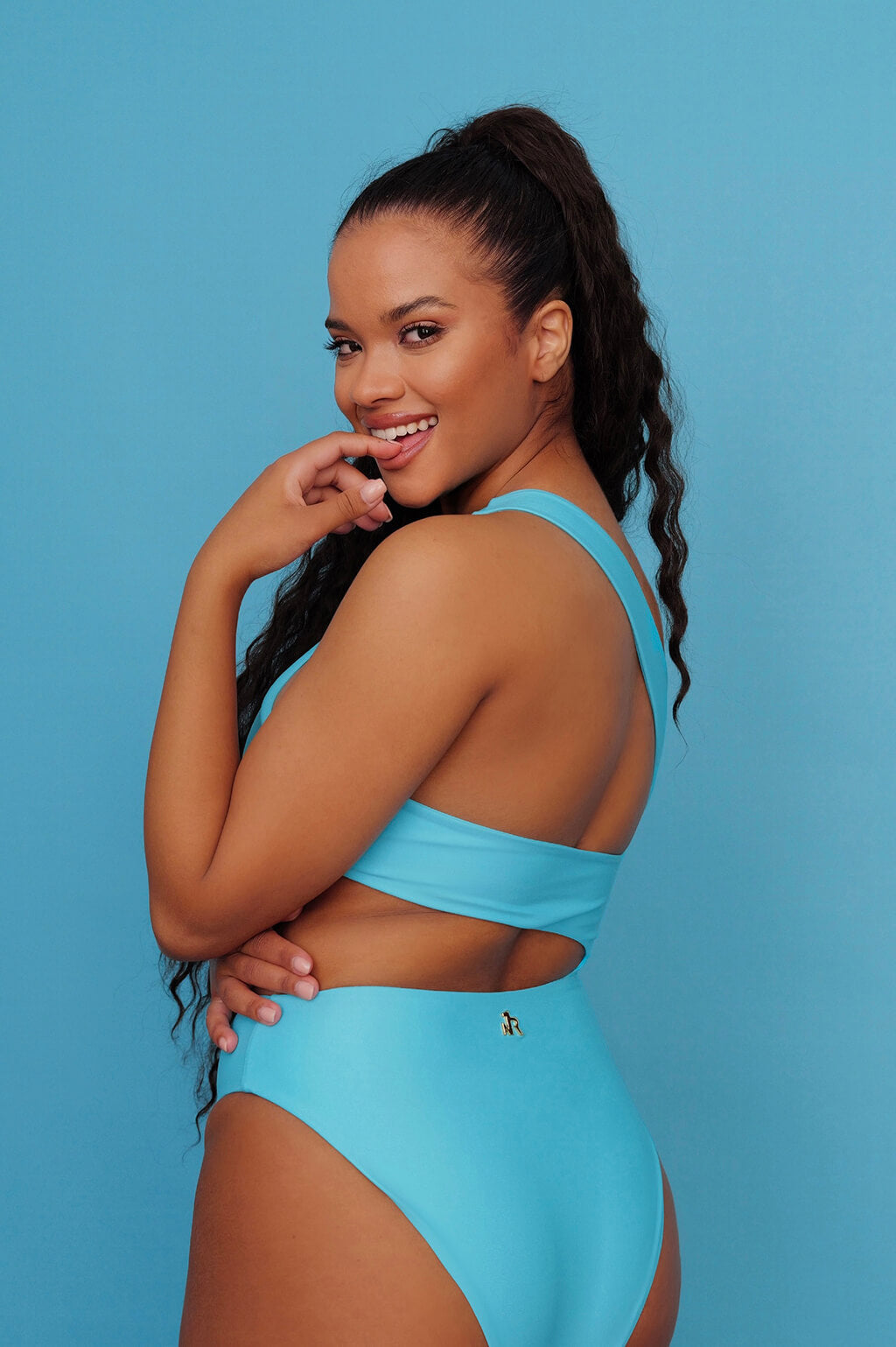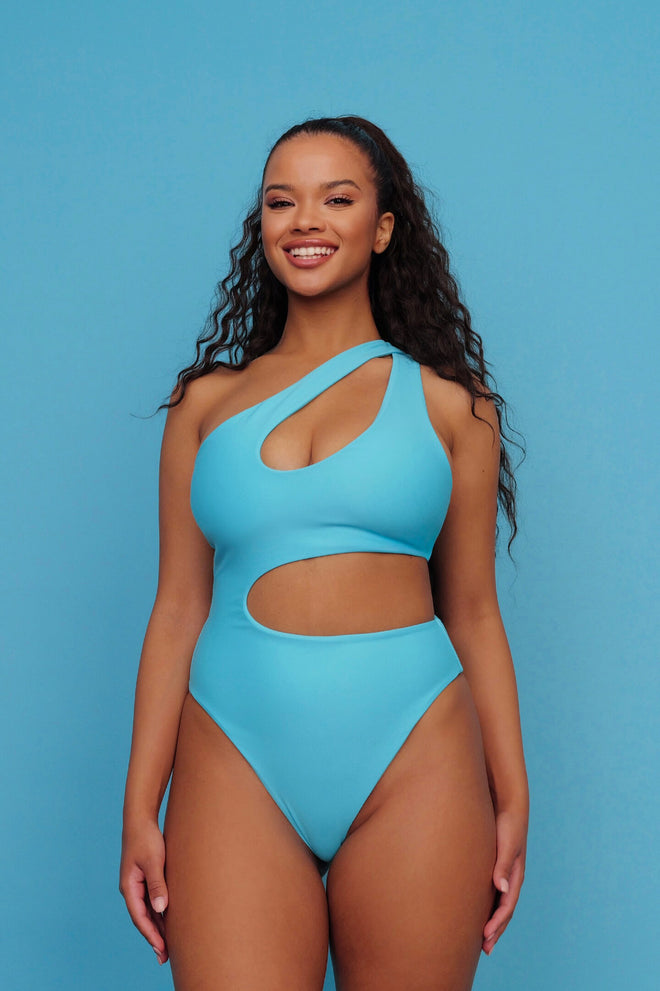 Silhouette: A one-piece monokini with an asymmetric cut, featuring bold yet elegant cutouts that enhance the natural body lines.