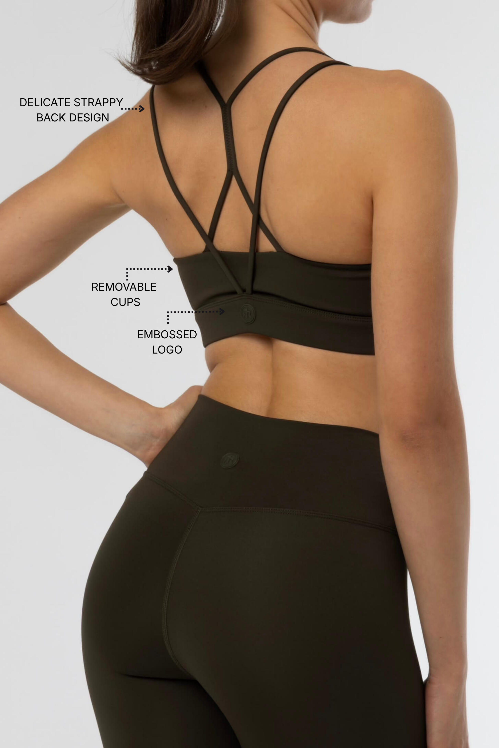 - Strappy X-back design that enhances mobility while adding a refined visual detail