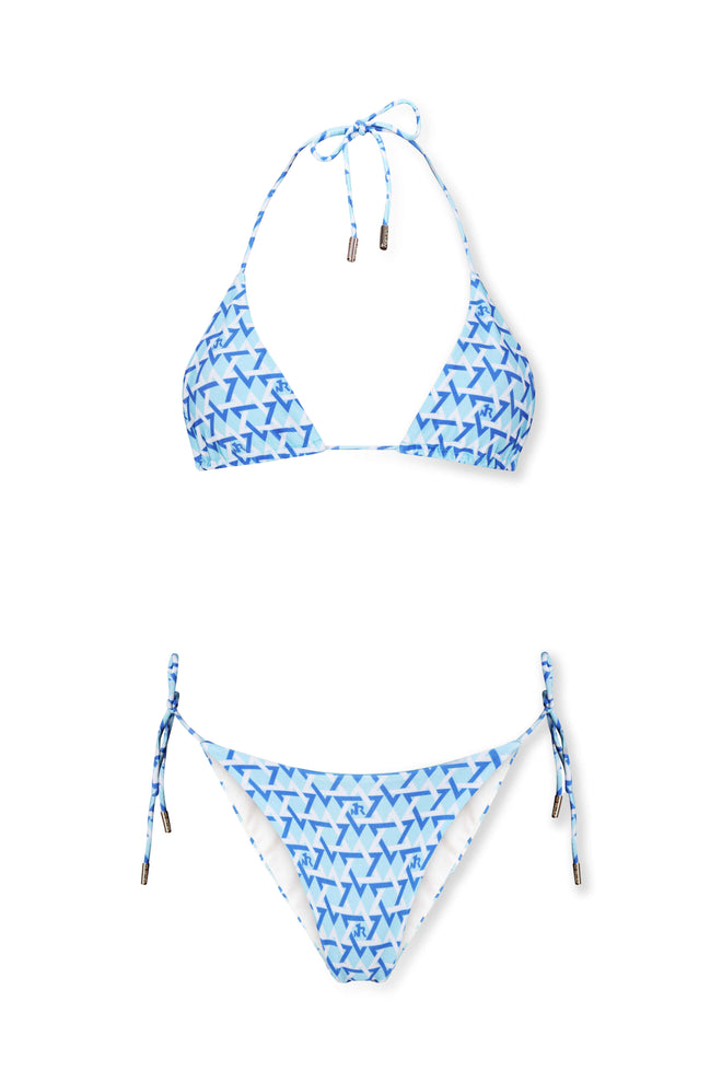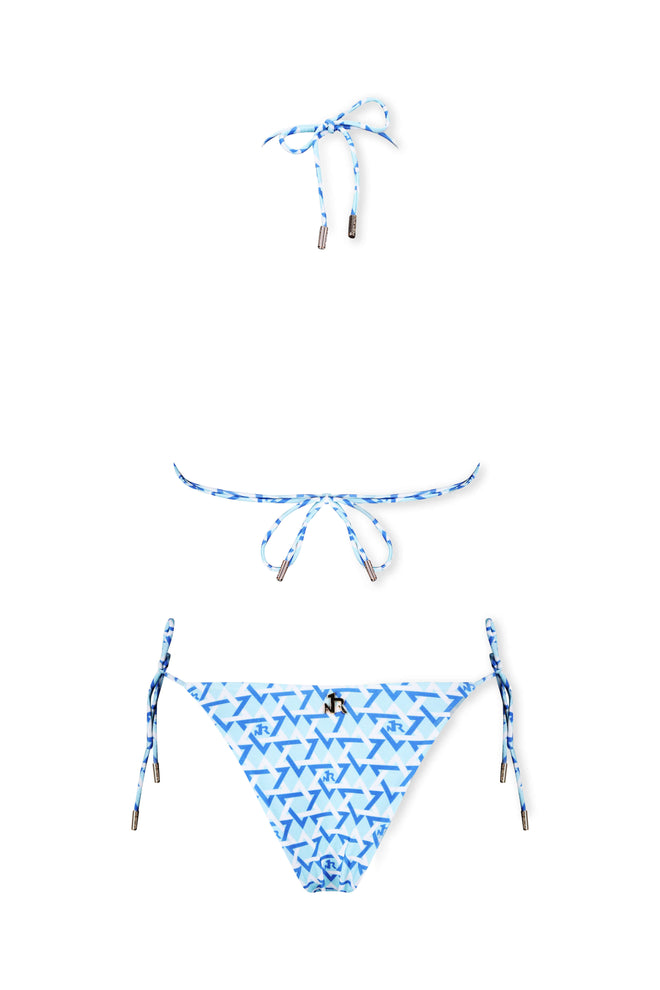 Sliding triangle cups for adjustable coverage and fit. Ties at the neck and back for customizable support.Deep neckline for a flattering, feminine shape.Soft, lightweight, stretchy fabric that gently hugs the body.