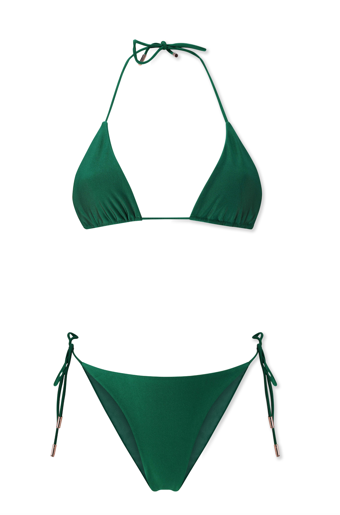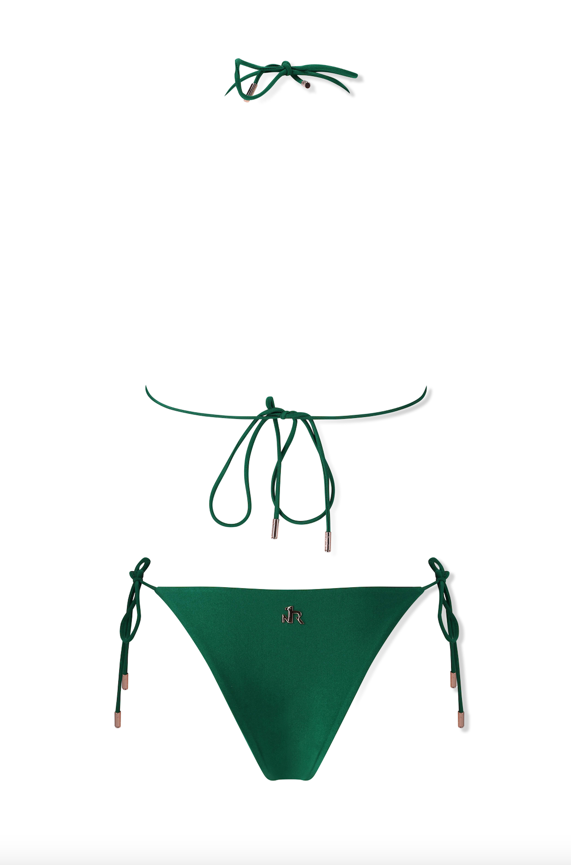 Sliding triangle cups for adjustable coverage and fit. Ties at the neck and back for customizable support.Deep neckline for a flattering, feminine shape.Soft, lightweight, stretchy fabric that gently hugs the body.