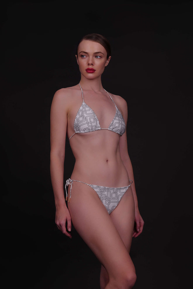 Minimal Tie-Side Bikini Low-rise, clean-cut bottom with delicate side ties. Minimal back coverage for a sculpted and bold silhouette. Soft and feminine finish with a sleek, barely-there shape.