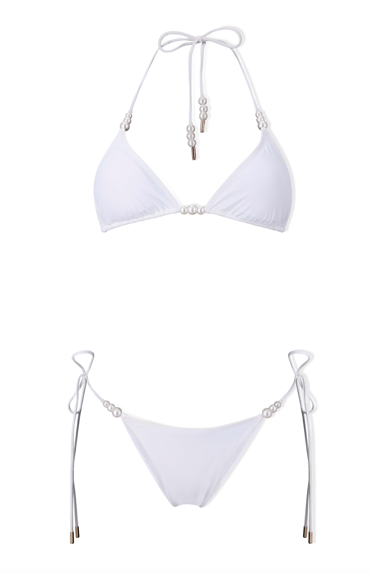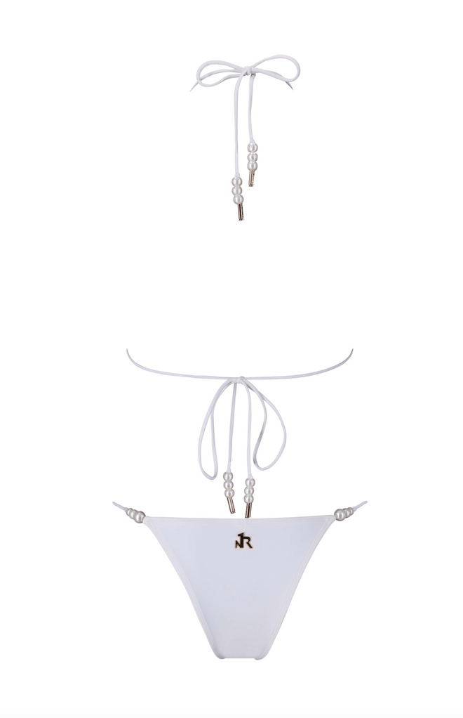 Tie-side bottom with a flattering, adjustable fit. Pearl accents at the sides create a romantic and standout