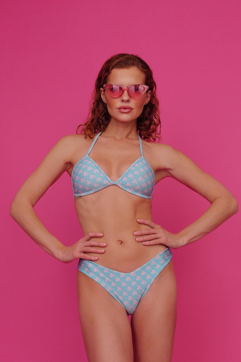 A classic triangle bikini top with a clean neckline and thin ties at the back and neck. Features light padding for subtle support and a natural, feminine shape. Its sleek lines and minimalist cut offer timeless elegance.
