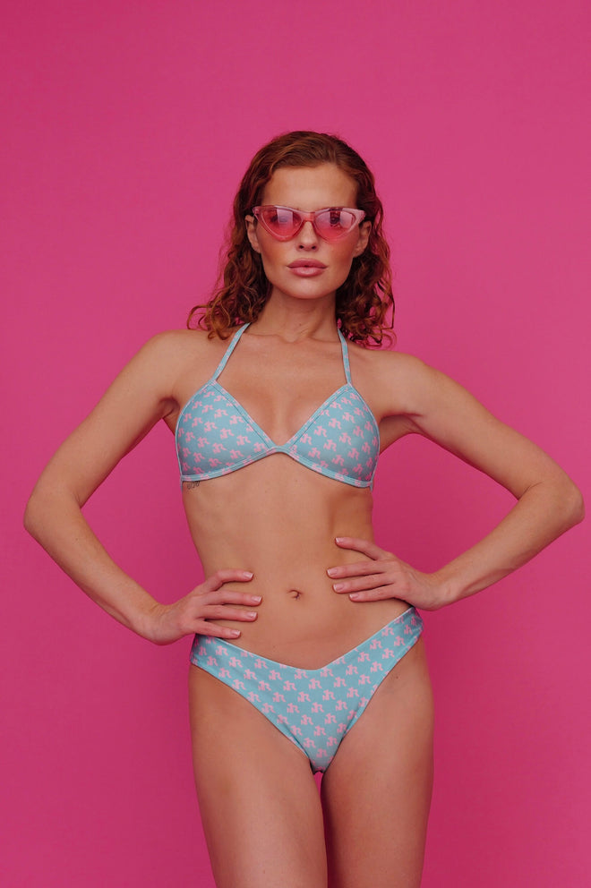 High-leg bikini bottom in a flattering V shape with wide sides and adjustable back tie for a custom fit. Designed to elongate the legs