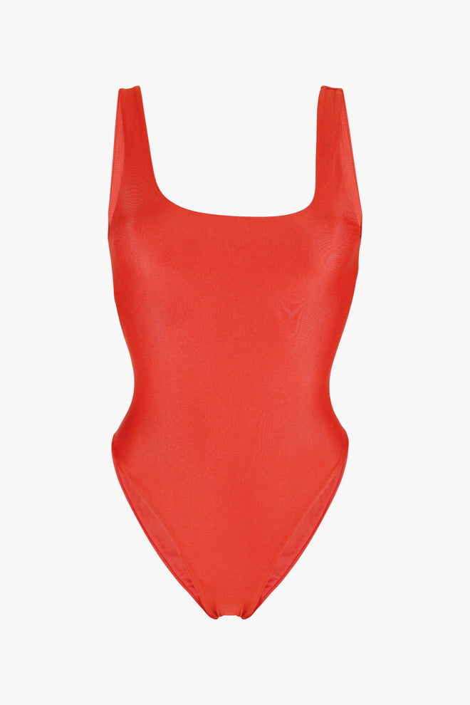 clean design and gently rounded lines.Neckline: Mid-height square neckline – offering a balanced