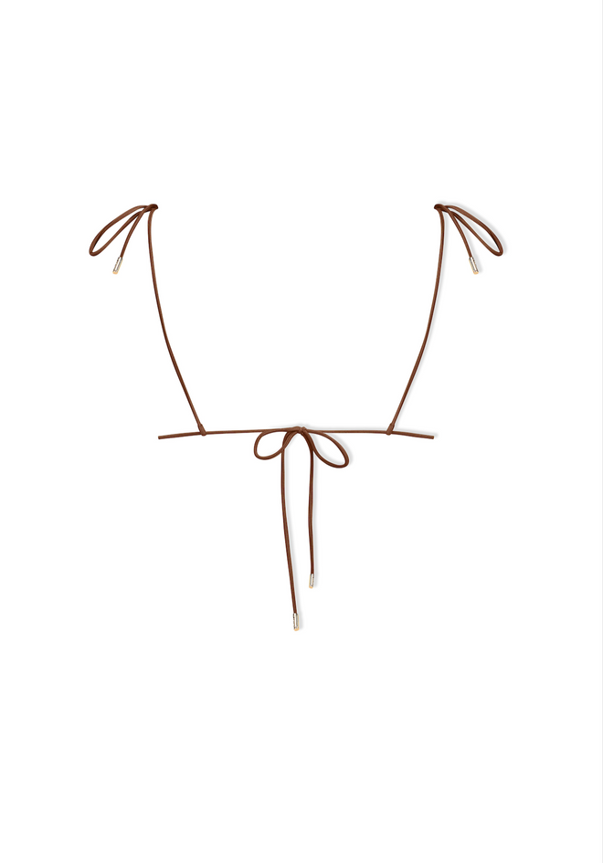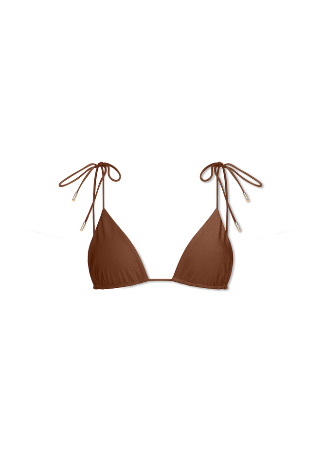 Classic triangle bikini top with a design twist – the straps tie over the shoulders rather than around the neck, creating an elegant and feminine look. This delicate design detail adds sophistication and provides all-day comfort.