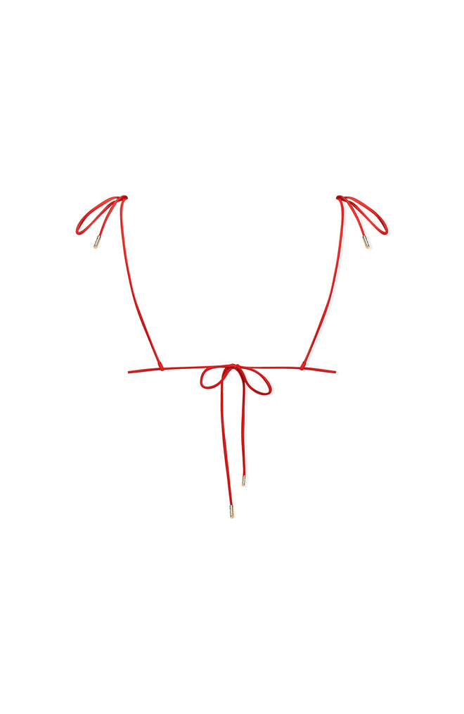 Classic triangle bikini top with a design twist – the straps tie over the shoulders rather than around the neck, creating an elegant and feminine look. This delicate design detail adds sophistication and provides all-day comfort.