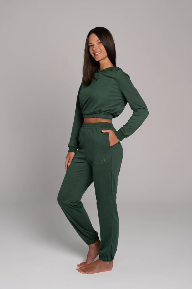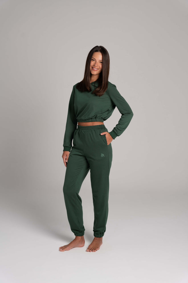 The Pure Confort Set is your go-to for effortless style and relaxation. Featuring a cropped hoodie with an elastic hem and matching jogger pants, this set blends softness, flexibility and a modern fit. Designed with side pockets and elastic cuffs for everyday ease, it’s perfect for lounging at home or casual outings.