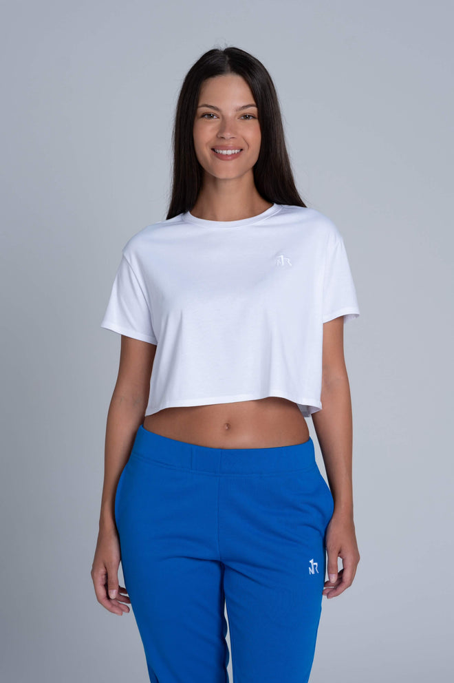 The T1 Cropped T-Shirt is a must-have essential for a clean and modern look. Crafted from a soft, lightweight cotton blend, this relaxed-fit crop top offers effortless comfort with a stylish edge. Featuring short sleeves, a classic crew neckline and a subtle embroidered logo on the chest, it pairs perfectly with joggers, jeans, or shorts for a versatile everyday outfit.