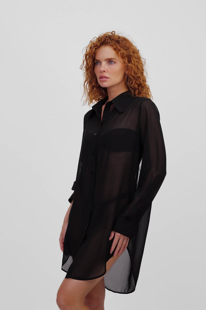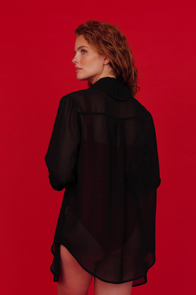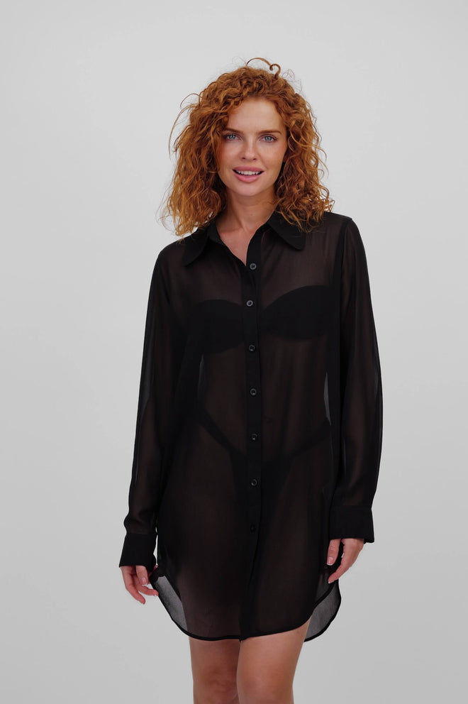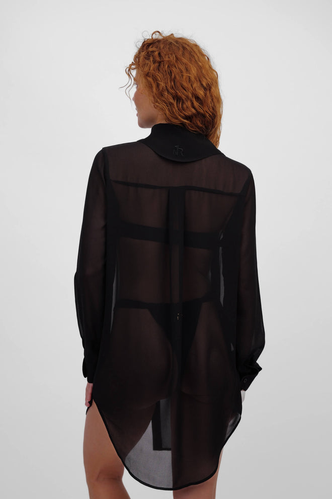 Light, airy, and effortlessly chic – this sheer beach dress is your go-to for sunny getaways and seaside elegance. Designed in a relaxed oversized fit with button-down closure, it flows beautifully over your swimwear while adding just the right amount of mystery and style. Featuring long sleeves with cuff details and a subtle embroidered logo on the back collar, it’s the perfect blend of comfort and sophistication.