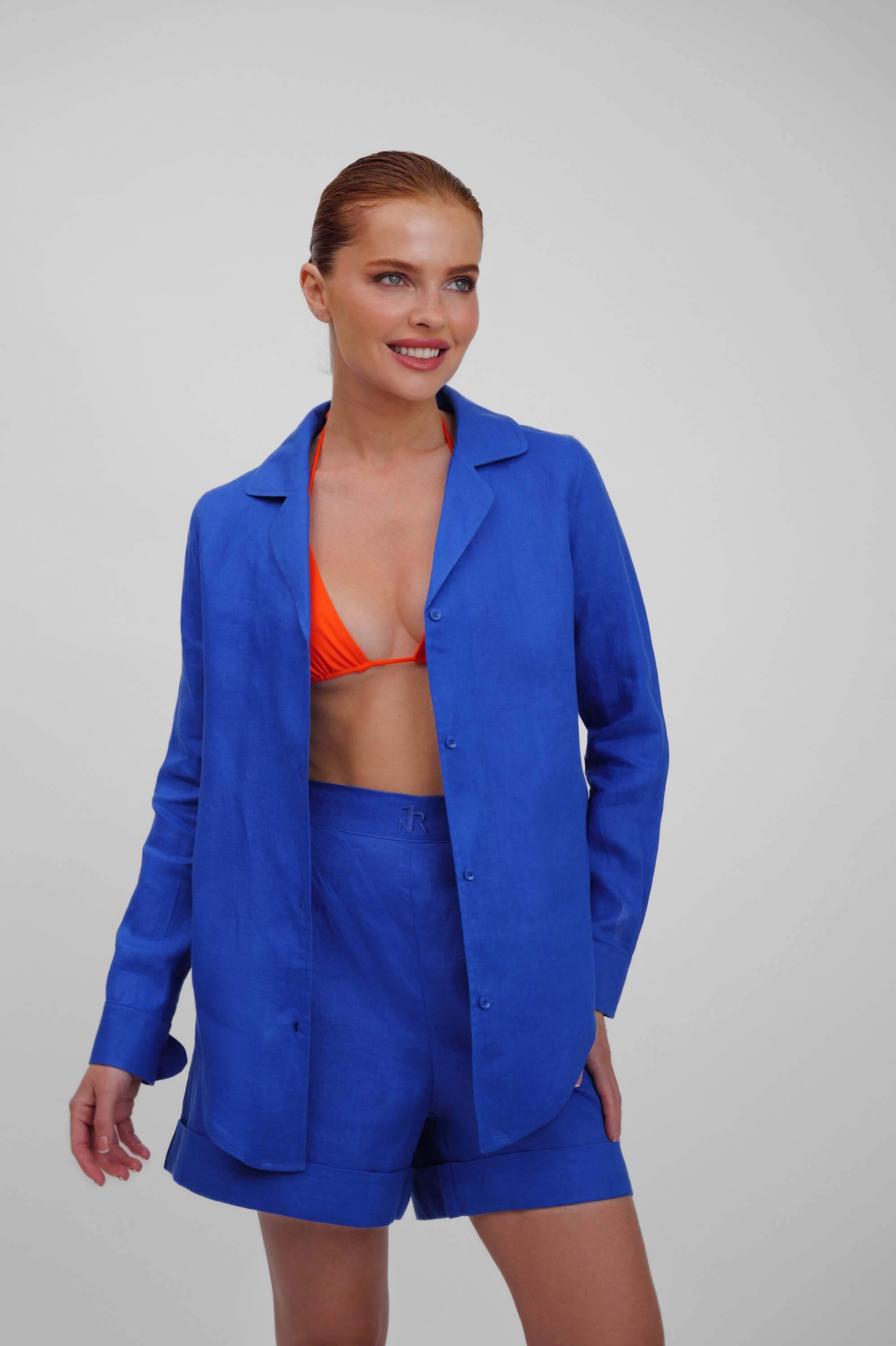 Expertly tailored from 100% natural linen, these high waisted shorts combine structured elegance with breathable comfort. Designed to flatter the silhouette, they feature soft front pleats, discreet side pockets, and a clean back for a smooth finish. The wide waistband offers a defined fit and is adorned with a finely embroidered logo, adding a signature touch of sophistication. With their natural texture and airy feel, these shorts are the perfect balance of polished and effortless ideal for warm days and elevated resort styling.